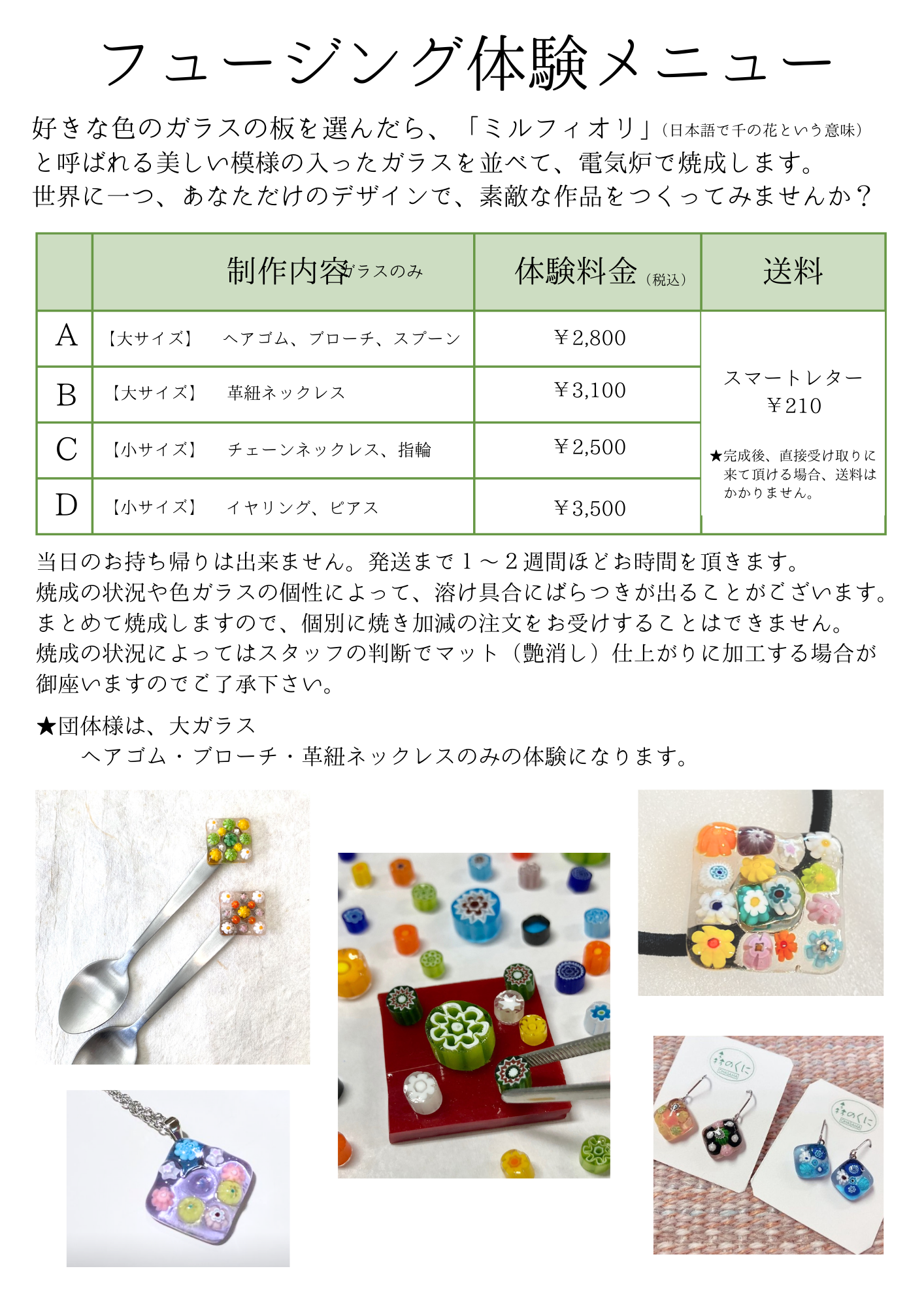 吹きガラスメニューは